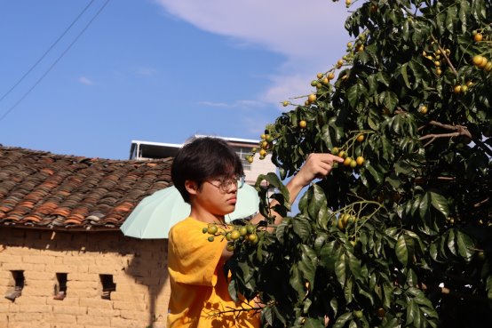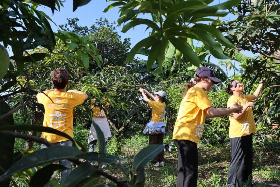 图为万“乡”更兴实践队成员在采摘芒果 中国青年网通讯员 焦奕嘉 摄
